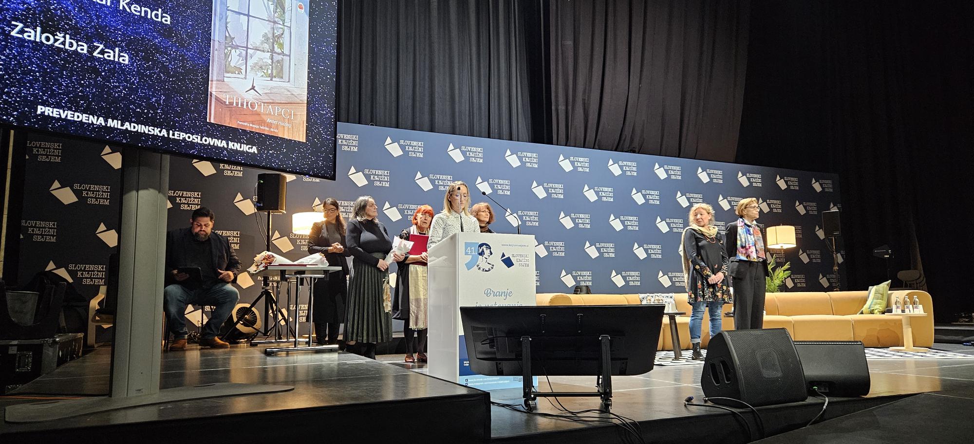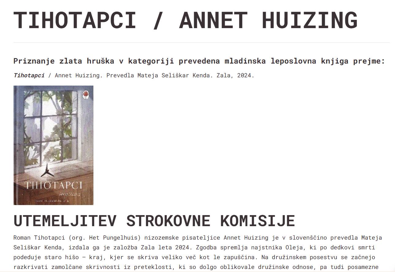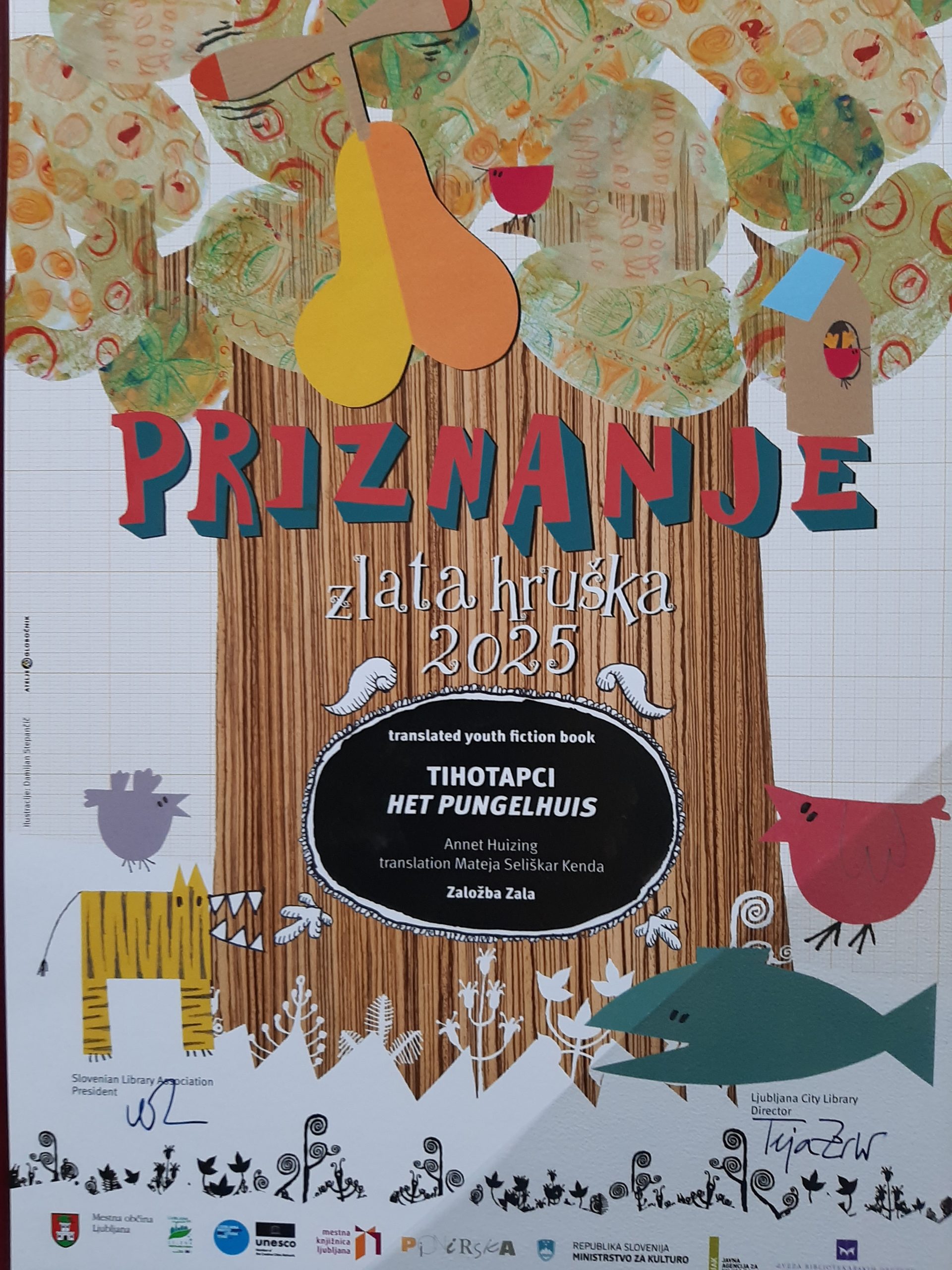 Zlato priznanje za najboljše prevodno mladinsko delo (Tihotapci pisateljice Annet Huizig in prevajalke Mateja Seliškar Kenda)